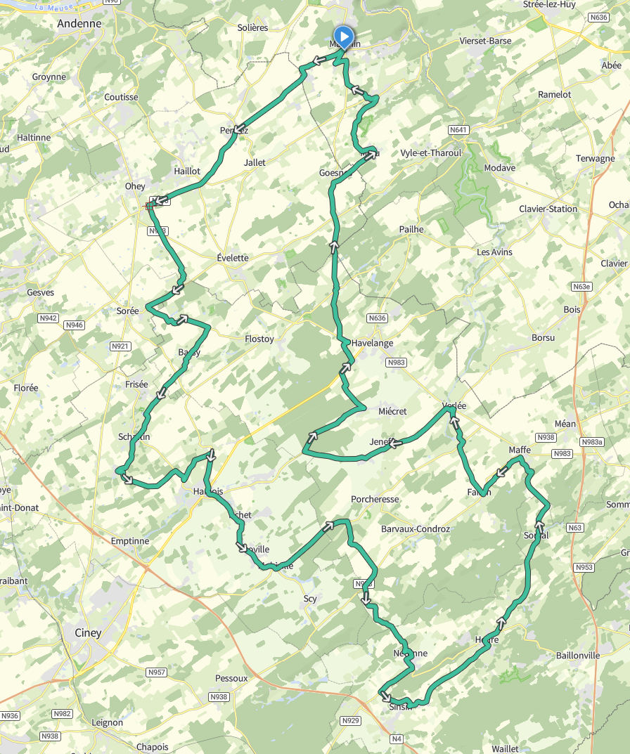 Nous vous proposons 4 parcours différents à travers le Condroz liégeois et Namurois, en direction de Durbuy.